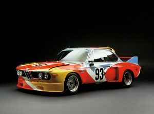De BMW 3.0 CSL, waarmee Alexander Calder in 1975 de eerste steen legde voor de Art Car Collection, was ook een van zijn laatste kunstwerken voor zijn dood. Als beeldhouwer die gewoonlijk zijn eigen vormen bedacht, wist Calder zich los te maken van de formele structuur van raceauto’s en streefde hij ernaar om ze, door ze te beschilderen, zijn eigen kenmerkende stempel te geven. Net als bij zijn sculpturen en mobiles gebruikte hij intensieve kleuren en sierlijk vloeiende oppervlakken die hij royaal verdeelde over de vleugels, de motorkap en het dak.